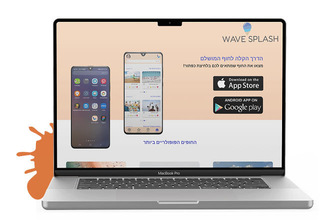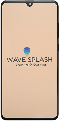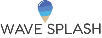 The Wave Splash logo is clean and modern. It features a location pin icon, a universal symbol for navigation, cleverly filled with layered wave-like shapes in shades of blue and sandy beige, visually representing the sea and beach. This dual symbolism reflects both the physical environment and the digital functionality of the app.